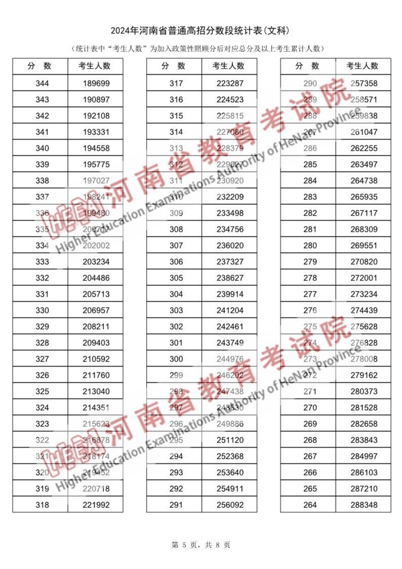 2024年河南高考一分一段表(文科、滑动查看):