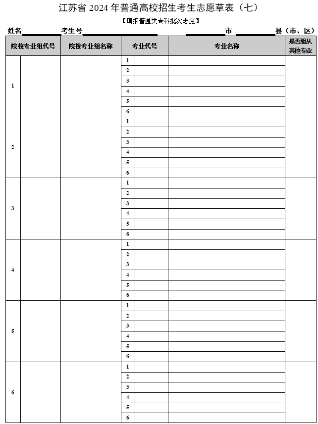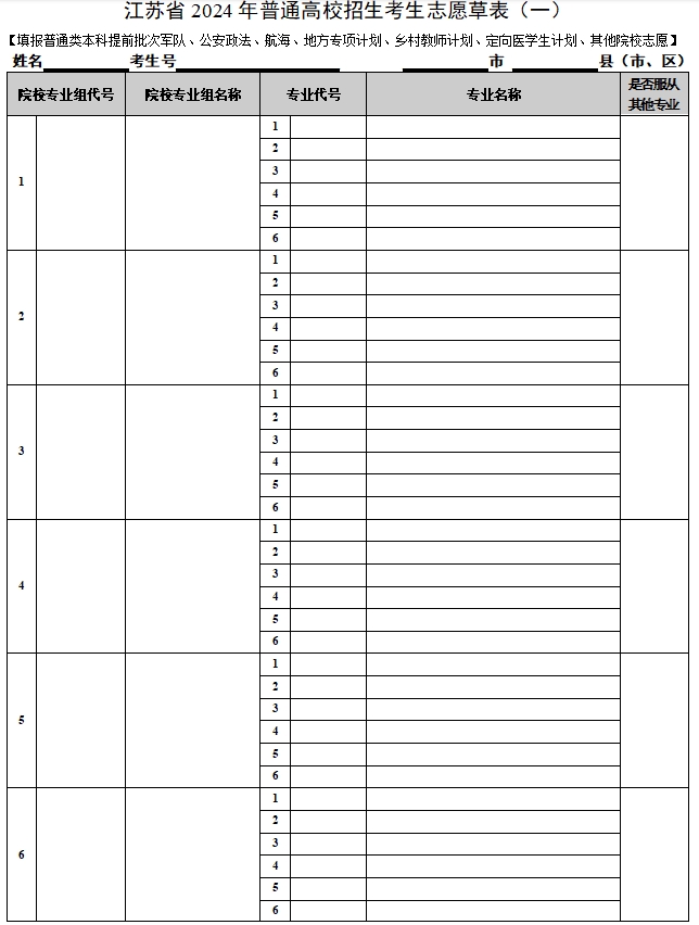 2025年的暂未公布,以下是2024年正式版志愿表格,可参考。