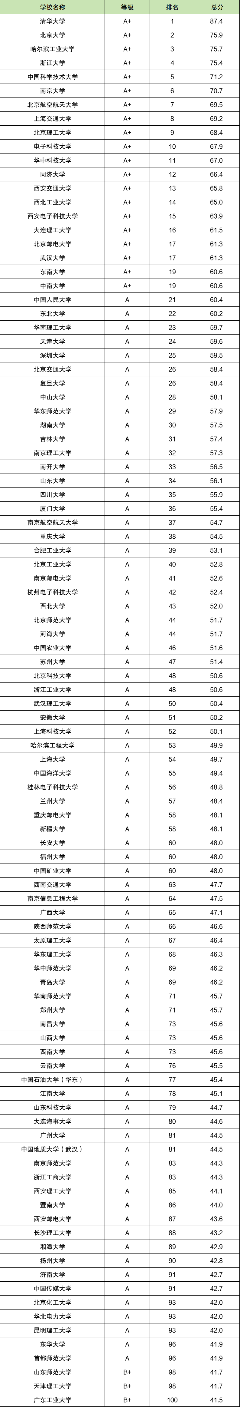 注:由于计算机科学与技术专业的开设院校数量庞大,本文只整理出前100强的院校名单。
