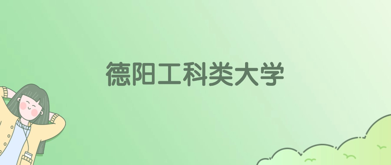 德阳的工科类大学有中国民用航空飞行学院、四川工程职业技术大学、四川建筑职业技术学院、德阳城市轨道交通职业学院等4所学校。