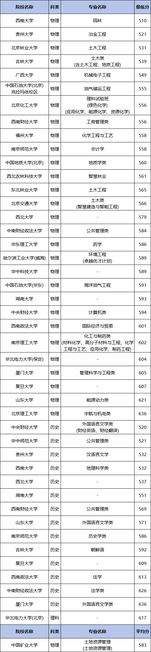 2、兰州大学:物理类最低583分,对应工商管理类专业;历史类最低575分,对应工商管理类专业。