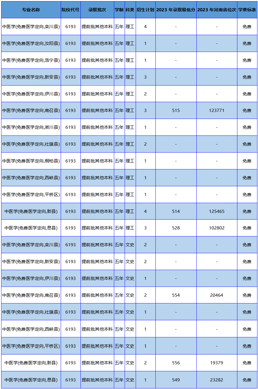 河南中医药大学中医学专业文科最低分540分、理科最低分523分,临床医学专业最低分523分(理科);