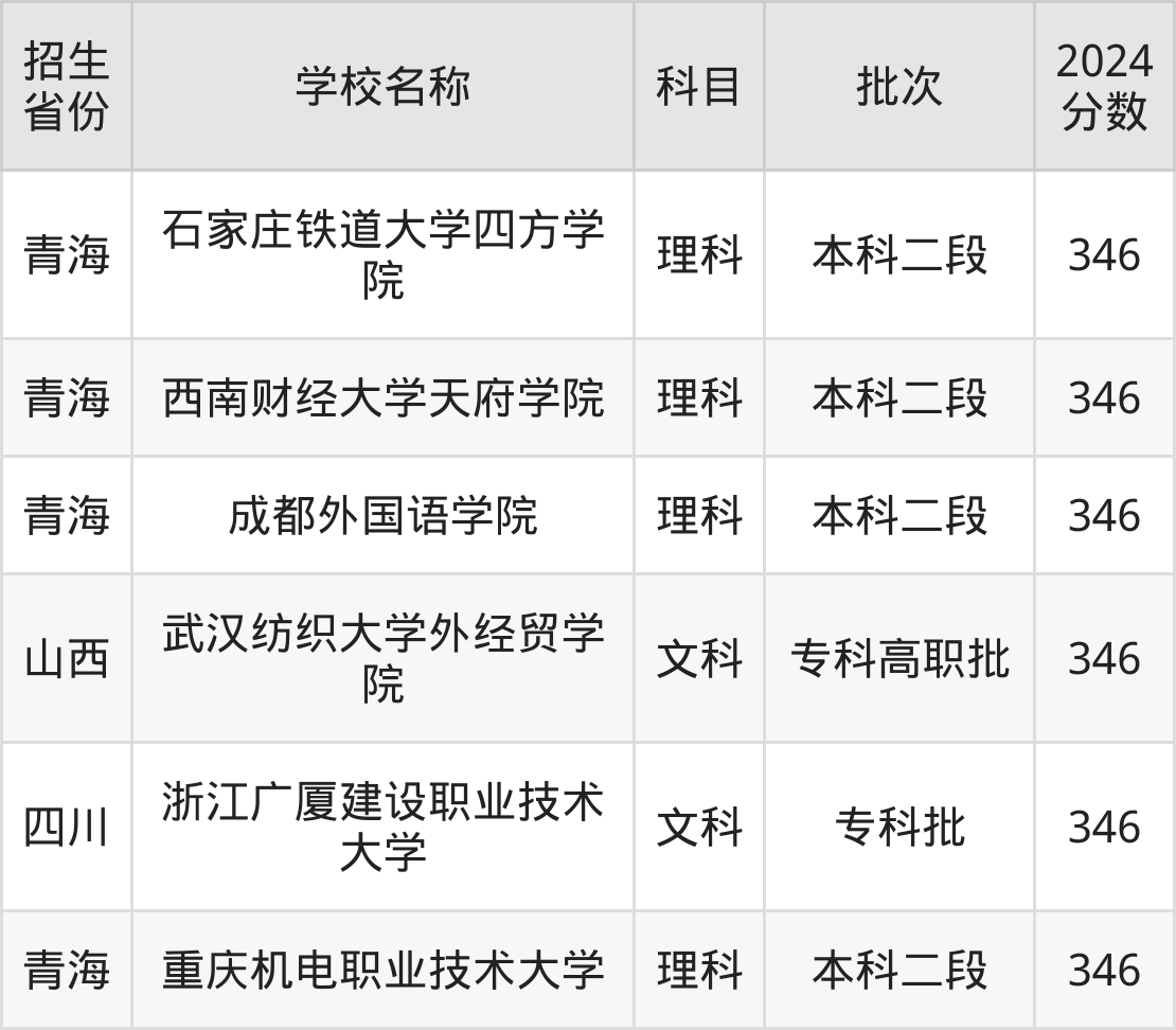 346分可以上的大学有石家庄铁道大学四方学院、西南财经大学天府学院、成都外国语学院、武汉纺织大学外经贸学院等二本民办大学。本文整理了青海、山西等全国346分左右的二本民办大学名单,请2025年高考生参考。