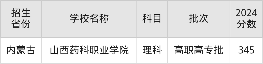 内蒙古自治区理科分数线是345分的公办专科大学有:重庆航天职业技术学院、山西药科职业学院。