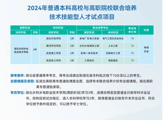 湖北水利水电职业技术学院3+2专本联合培养招生计划: