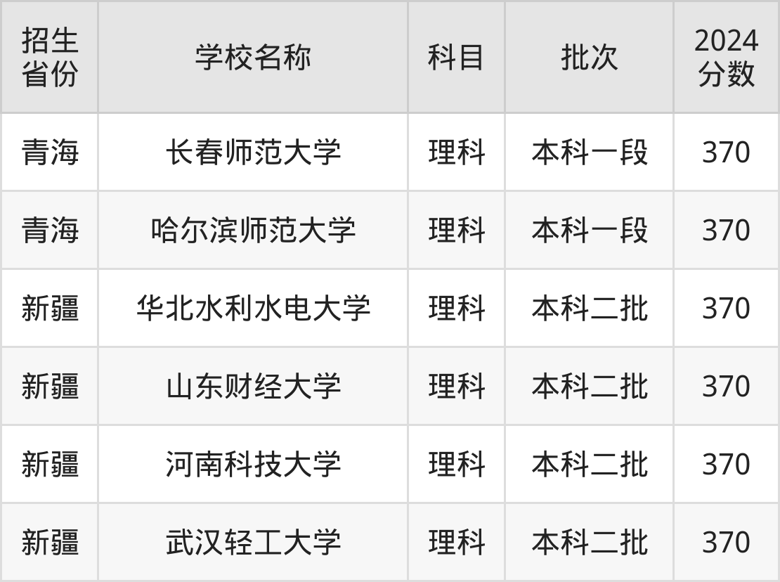 青海省理科分数线是370分的一本大学有:长春师范大学、哈尔滨师范大学。