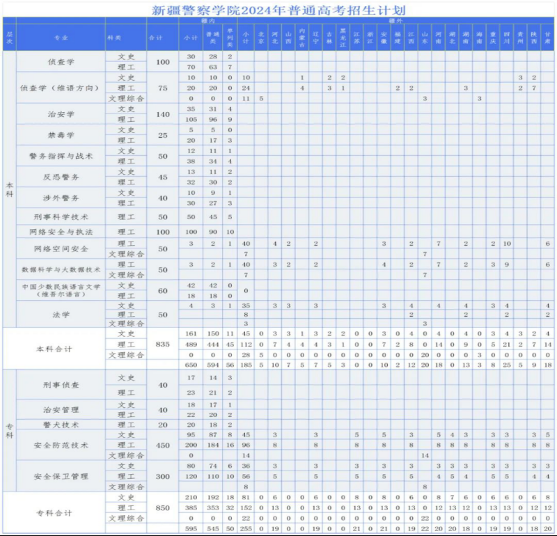 下文为大家整理了2024年新疆警察学院本科专业招生计划