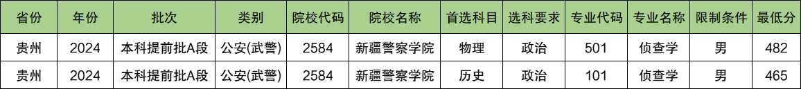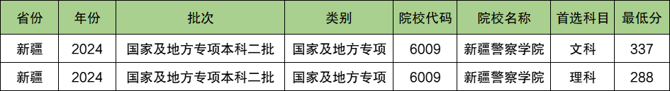 新疆警察学院2024年录取分数线已为大家整理如下,包含新疆警察学院在全国各省市的公安专业录取分数线,包含2024年学校的招生简章、招生计划等,供2024届考生及家长参考。