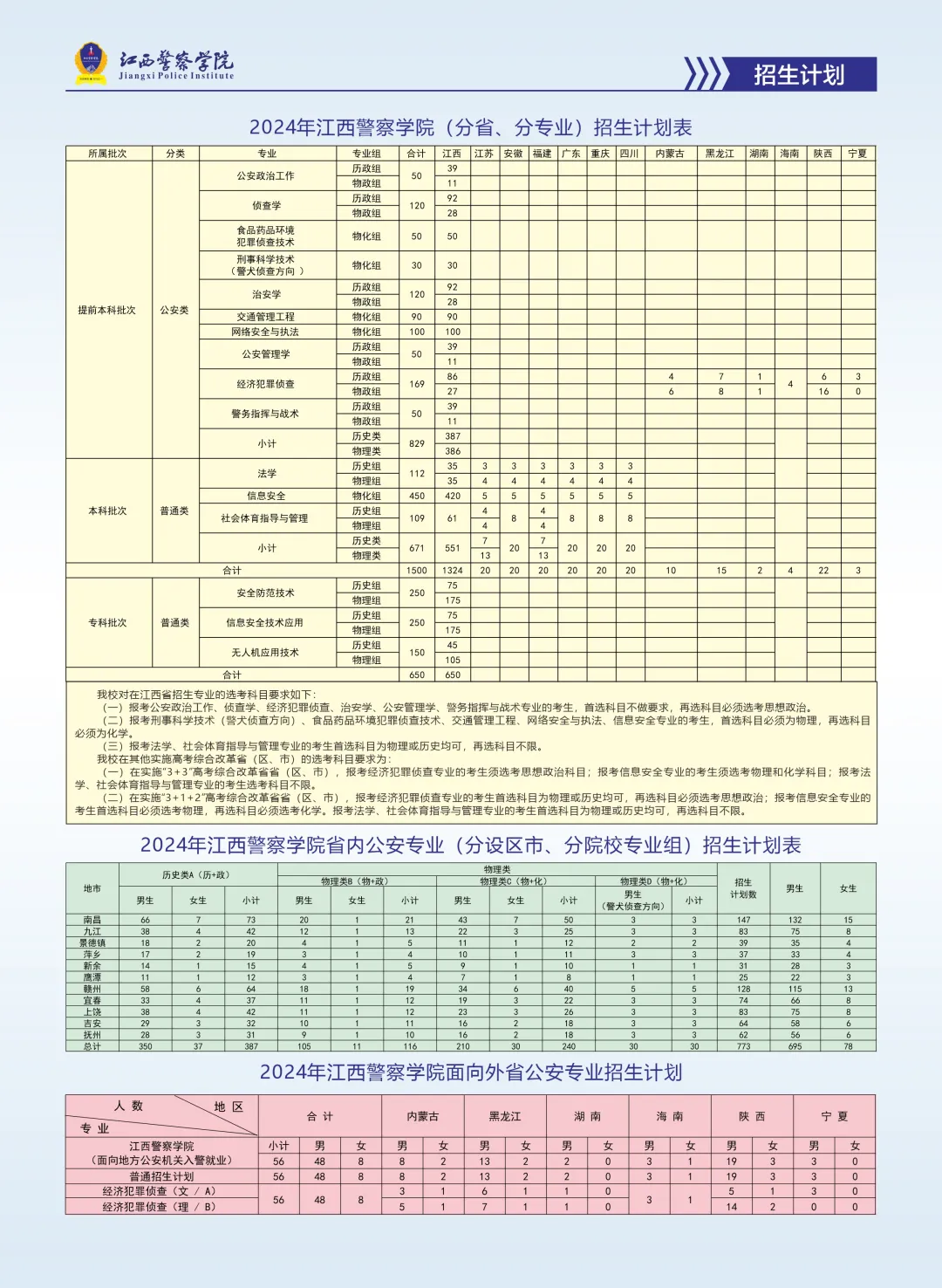 下文为大家整理了2024年江西警察学院本科公安专业招生计划
