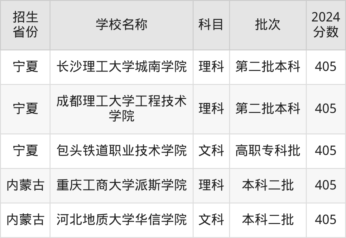 宁夏回族自治区理科分数线是405分的理科大学有:长沙理工大学城南学院、成都理工大学工程技术学院。