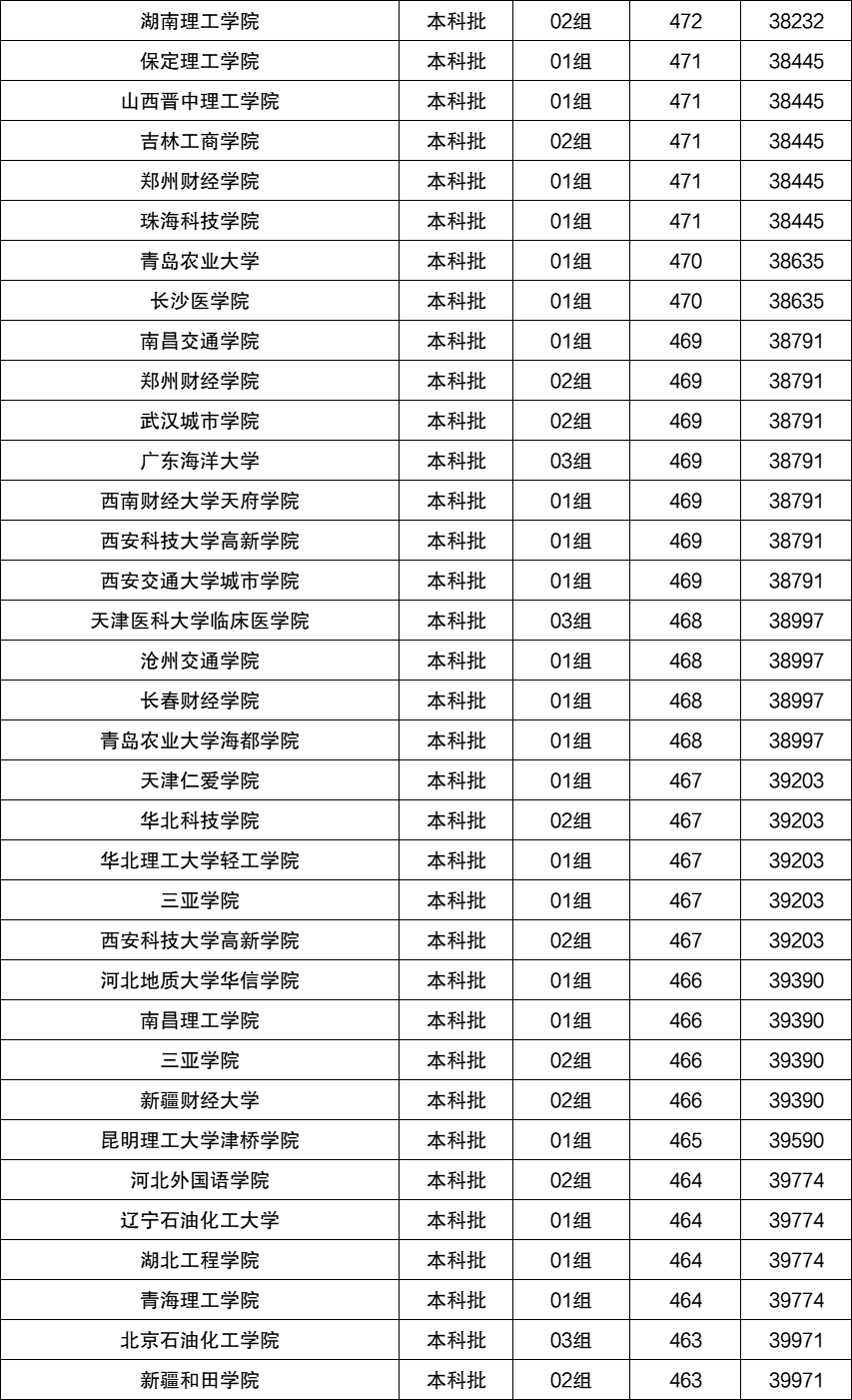 2、603分对应位次10213。有天津医科大学、华北电力大学(保定)、安徽大学、中国石油大学(华东)。