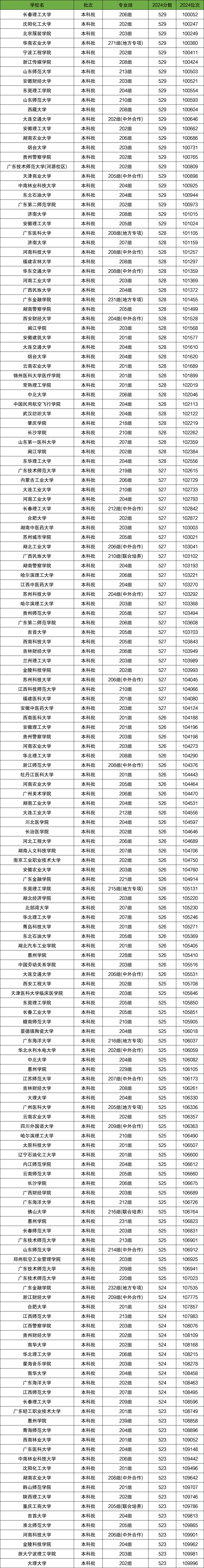 1、529分对应位次100052-101024。有长春理工大学、沈阳化工大学、北京服装学院、华南农业大学、宁波工程学院、浙江传媒学院、山东师范大学、安徽财经大学等23个院校专业组。