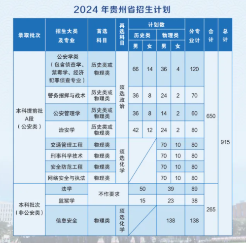 下文为大家整理了2024年贵州警察学院本科公安专业招生计划: