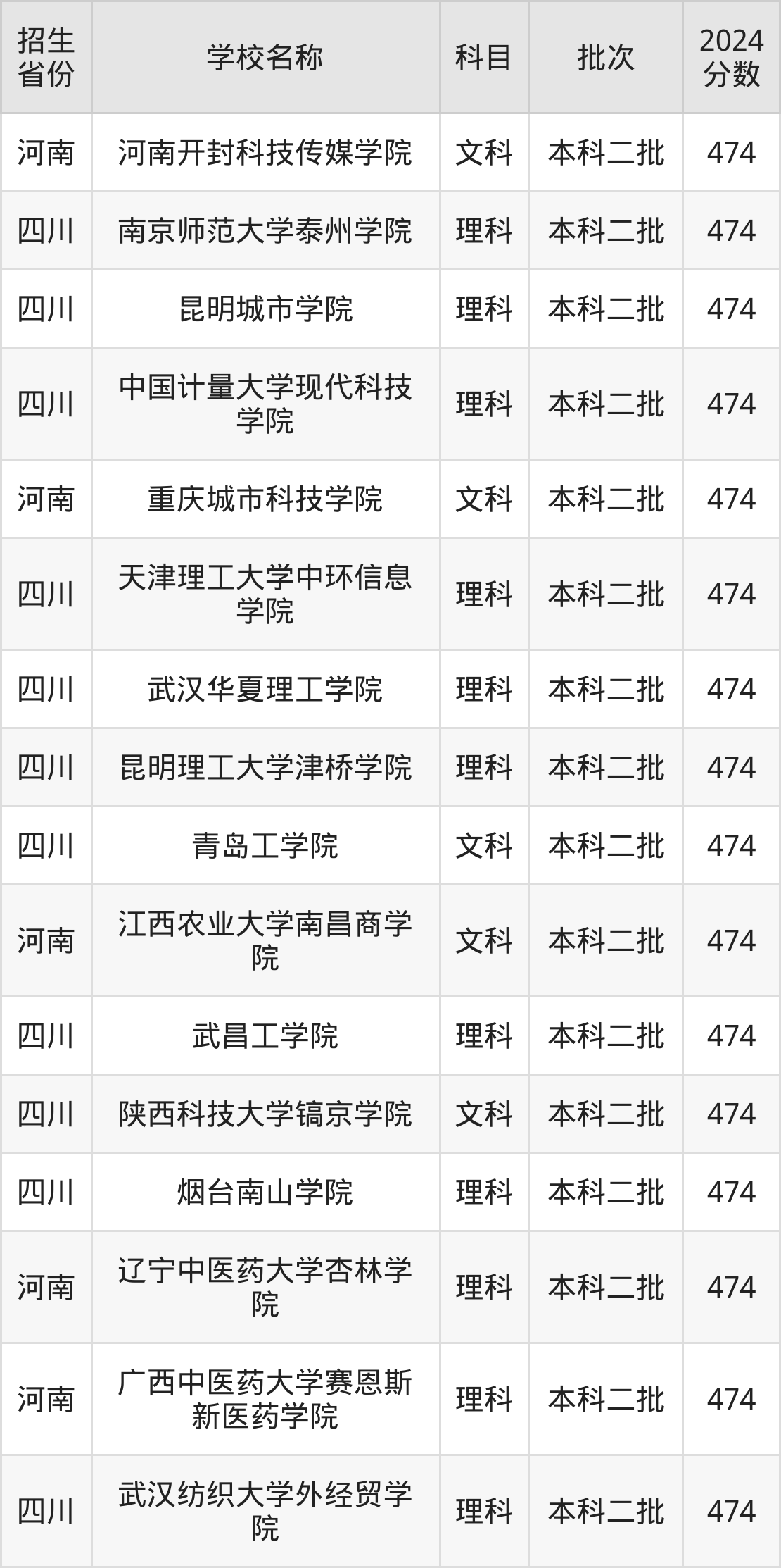 二、各省474分的二本民办大学名单