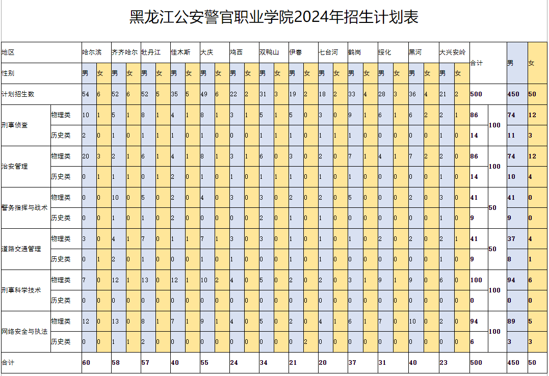 黑龙江公安警官职业学院2024年在黑龙江省的招生计划人数是500人。