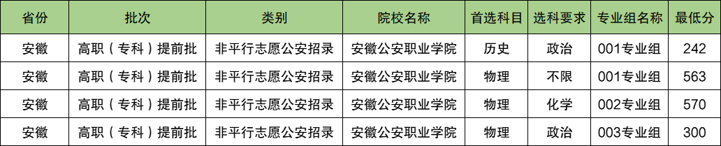 一、安徽公安职业学院2024分数线