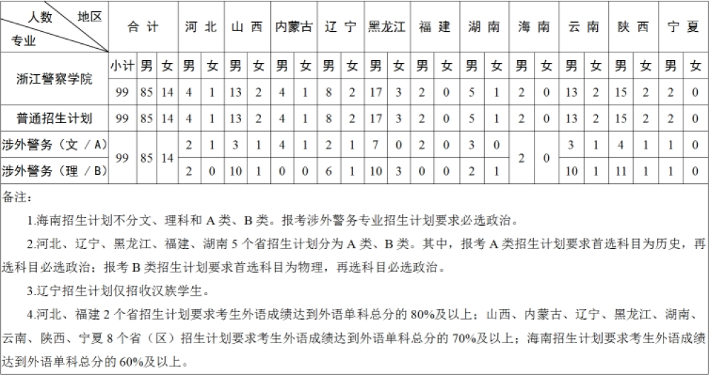 下文为大家整理了2024年浙江警察学院本科公安专业招生计划