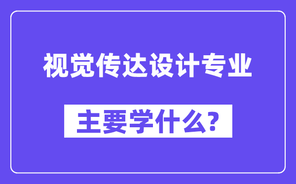 视觉传达设计专业的主要课程有:《设计素描》、《形态与形式》、《色彩与规则》、《装饰图案设计》、《图形创意》、《设计思维》、《平面广告设计》、《版面设计》、《字体设计》、《印刷工艺》、《广告摄影》、《插图设计》、《动态图形设计》、《包装设计》、《品牌形象设计》、《书籍设计》、《界面设计》、《环境导视设计》、《广告专题设计》、《出版物专题设计》、《文创产品设计》等。
