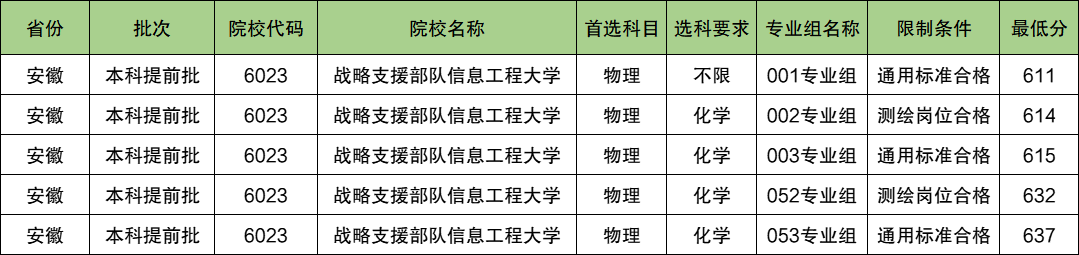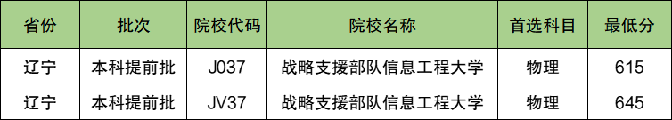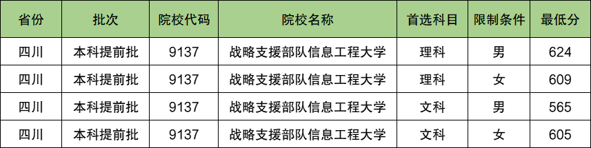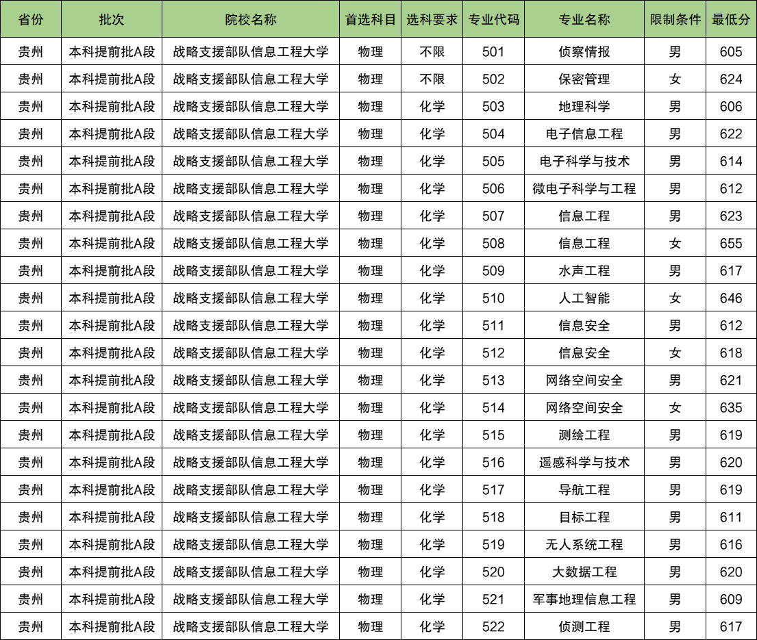 2024年战略支援部队信息工程大学生长军官本科学员在贵州的录取分数线整理如下,供大家参考。