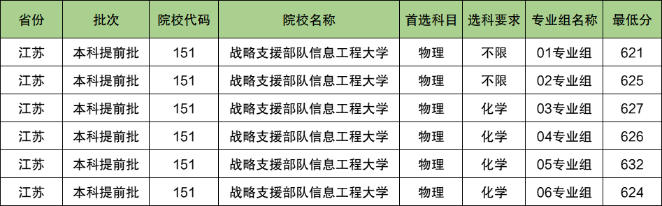 2024年战略支援部队信息工程大学生长军官本科学员在江苏的录取分数线整理如下,供大家参考。
