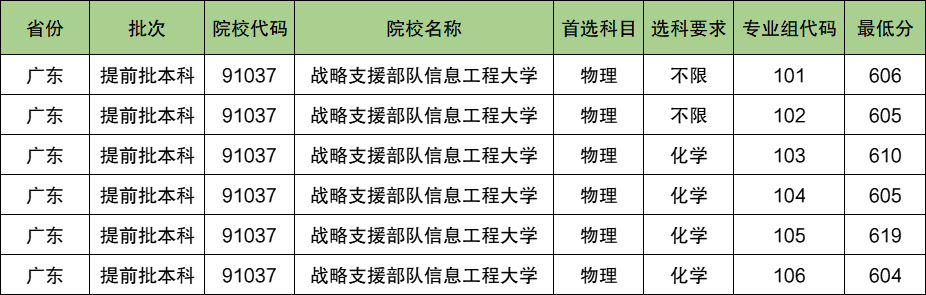 2024年战略支援部队信息工程大学生长军官本科学员在广东的录取分数线整理如下,供大家参考。