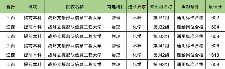 2024年战略支援部队信息工程大学生长军官本科学员在江西的录取分数线整理如下,供大家参考。