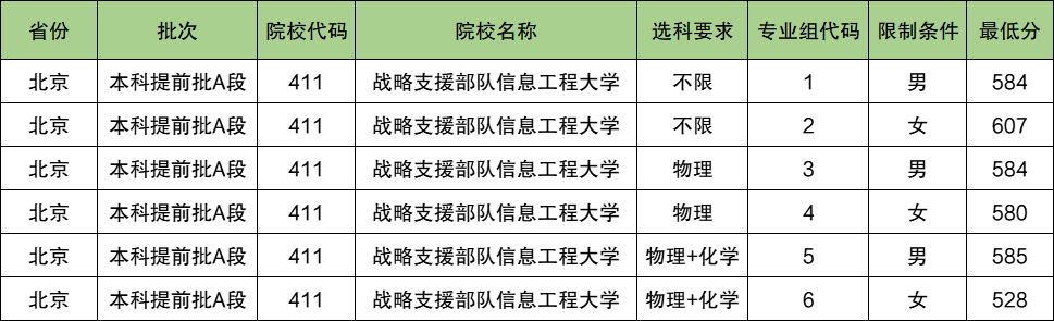 2024年战略支援部队信息工程大学生长军官本科学员在北京的录取分数线整理如下,供大家参考。