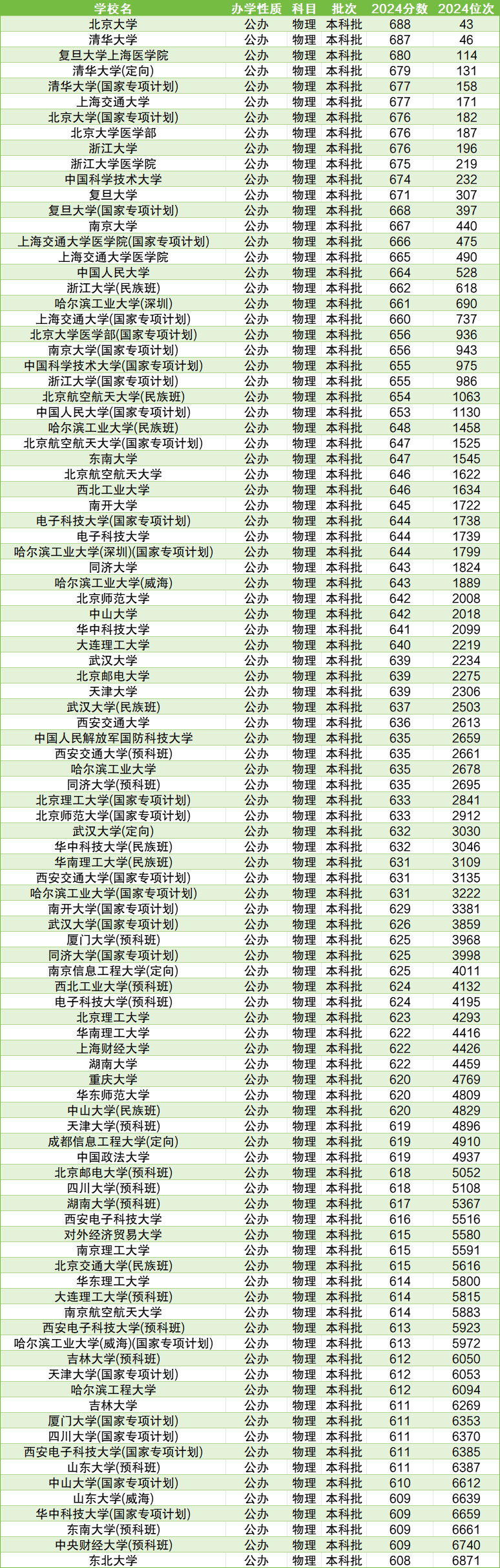 2024全国本科大学分数线范围从380分到688分、专科大学分数线范围从180分到426分,另外还有本科带专科的大学分数线范围是183分到427分。各个大学录取最低分不一样,具体本文为大家介绍,2025届高考生可参考。