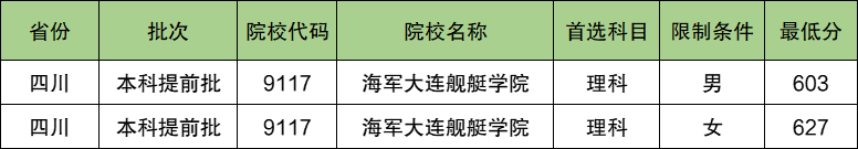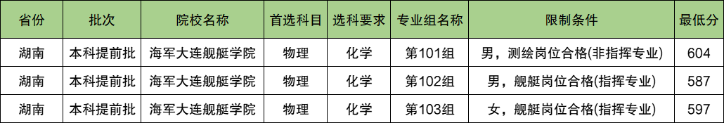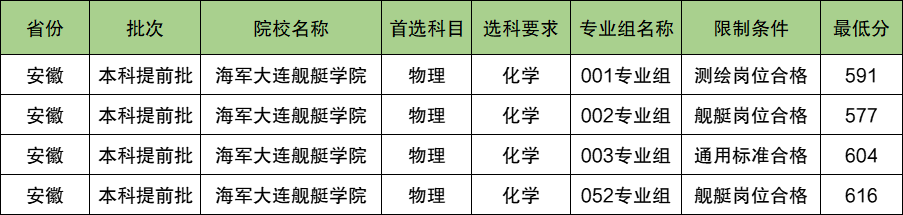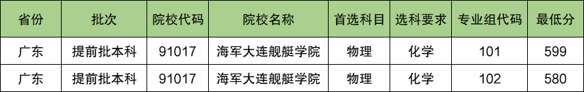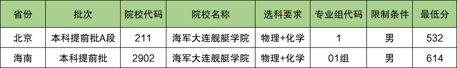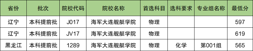 海军大连舰艇学院2024年录取分数线已为大家整理如下,包含海军大连舰艇学院在全国21个省市的生长军官本科学员高考生录取分数线,包含2024年学校的招生简章、招生计划等,供2024届考生及家长参考。