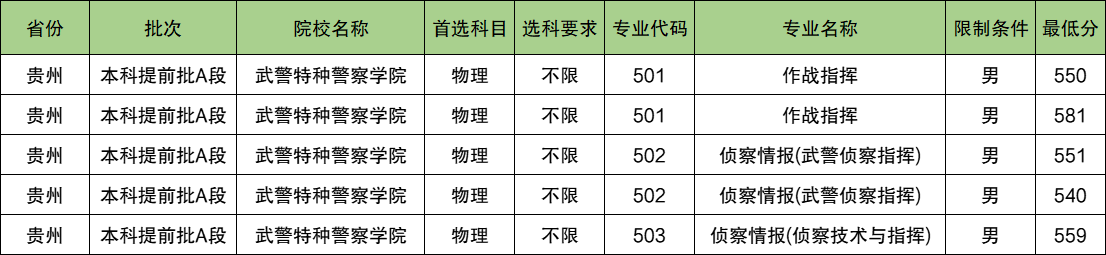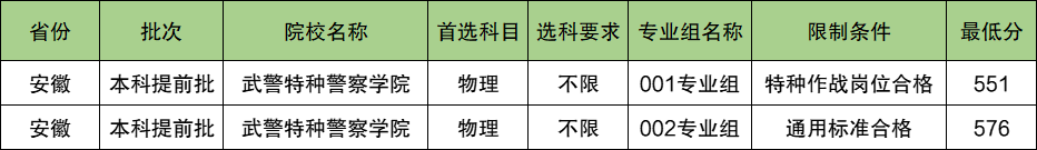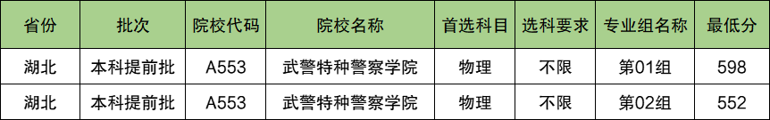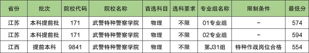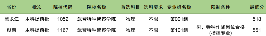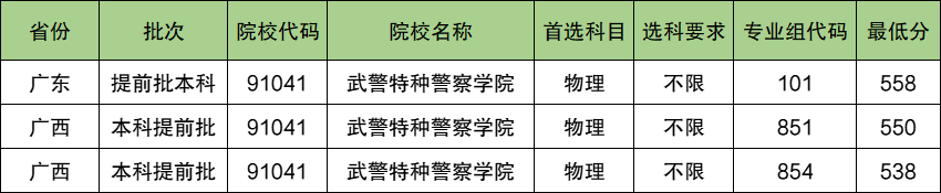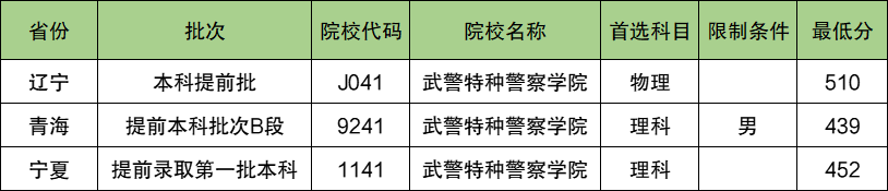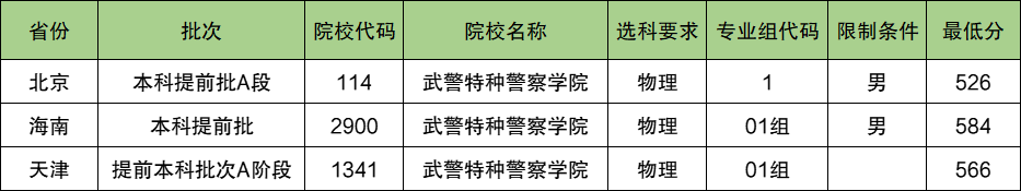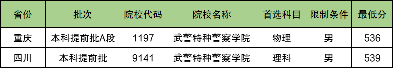 武警特种警察学院2024年录取分数线已为大家整理如下,包含武警特种警察学院在全国31个省市的生长军官本科学员高考生录取分数线,包含2024年学校的招生简章、招生计划等,供2024届考生及家长参考。