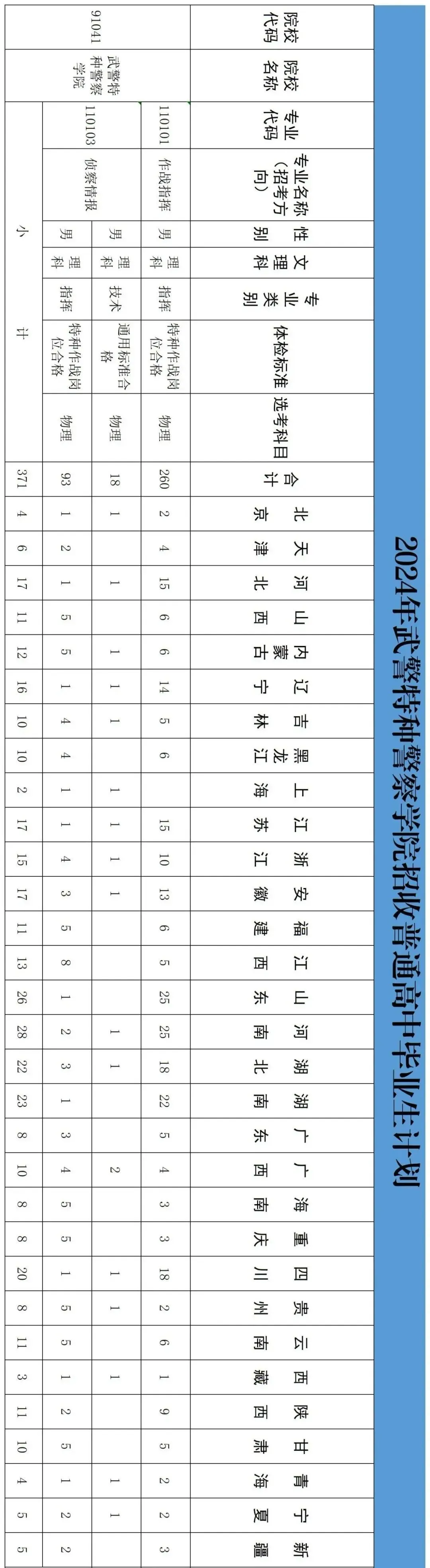 下文为大家整理了2024年武警特种警察学院生长军官本科学员高考生招生计划