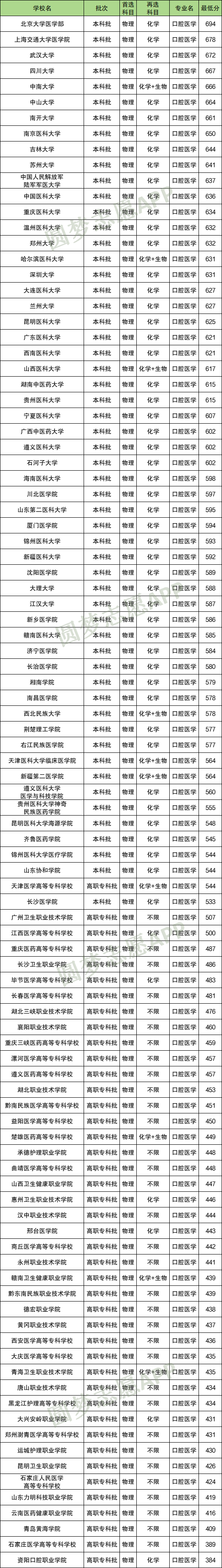 二、口腔医学专业各大学选科要求