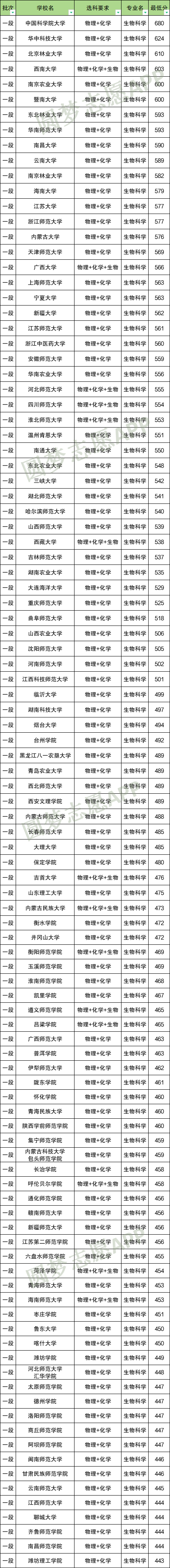 2024年南京农业大学生物科学专业,要求选科为物理+化学,最低分为600分。