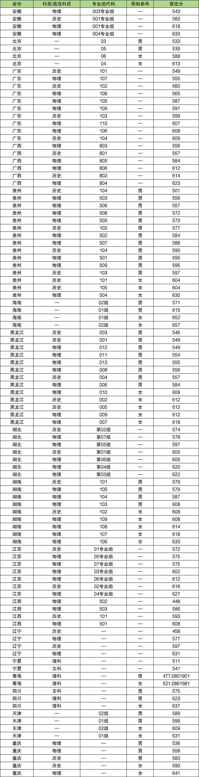 中国人民警察大学06组(思想政治),最低投档分为612分;