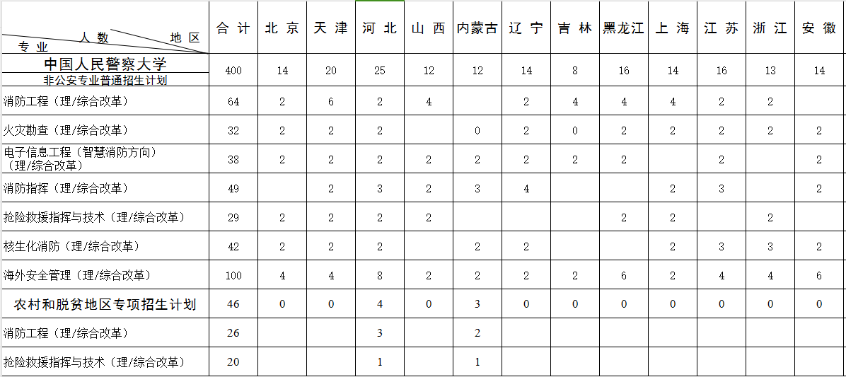 非公安专业录取安排在本科第一批次进行;在已合并本科录取批次的省(区、市),安排在本科批次进行。